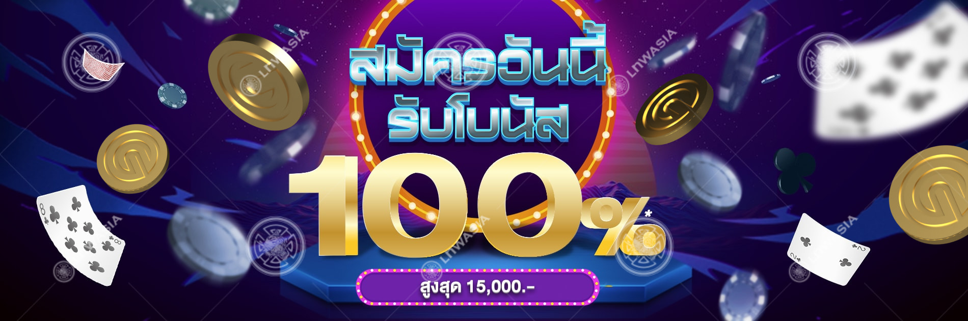 สมัครวันนี้ รับโบนัส 100% สูงสุด 15,000 บาท*