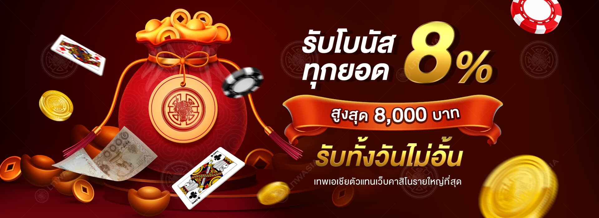 ยิ่งเติมยิ่งรับเพิ่ม โบนัส 8% สูงสุด 8,000 บาท*