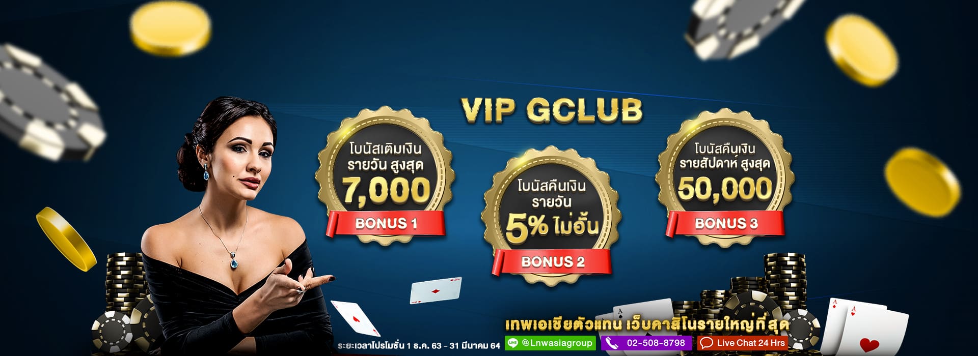 ลูกค้า VIP GCLUB ห้ามพลาด! โบนัสคืนเงิน 5% สูงสุด 50000 บาท ทุกวันไม่มีอั้น