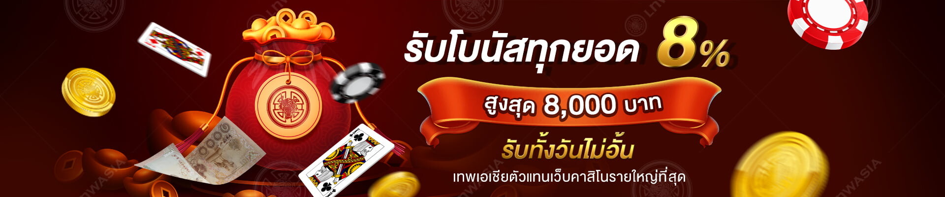ยิ่งเติมยิ่งรับเพิ่ม โบนัส 8% สูงสุด 8,000 บาท*